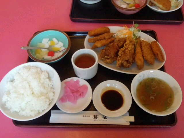中華料理屋「珍味」にて。